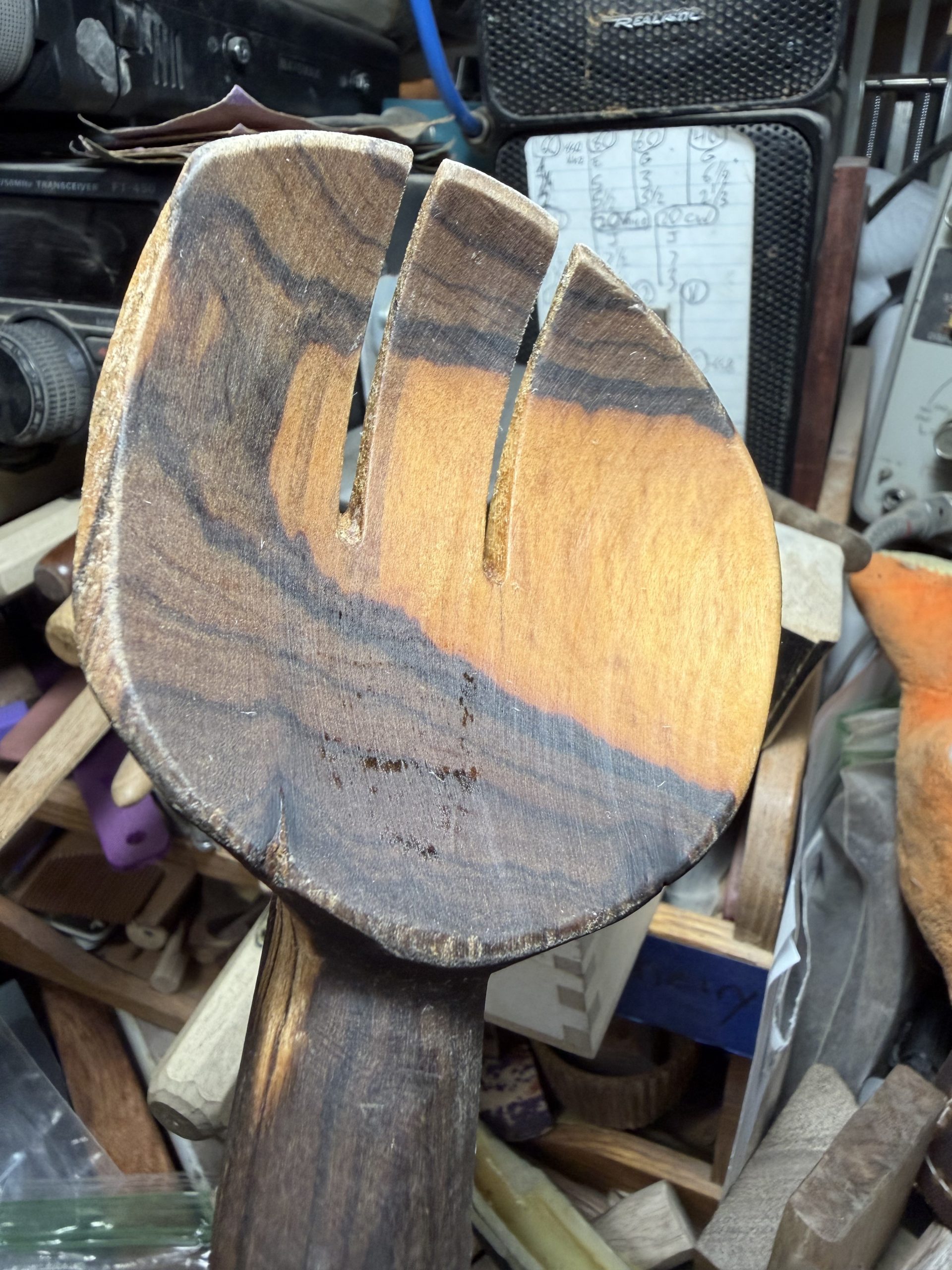 Came across a spoon made of what seems to be this stuff at goodwill today. I thought it was ziricote until looking at the end grain. It’s saturated with mineral oil so the face grain is a bit darker than usual. Pretty wood!