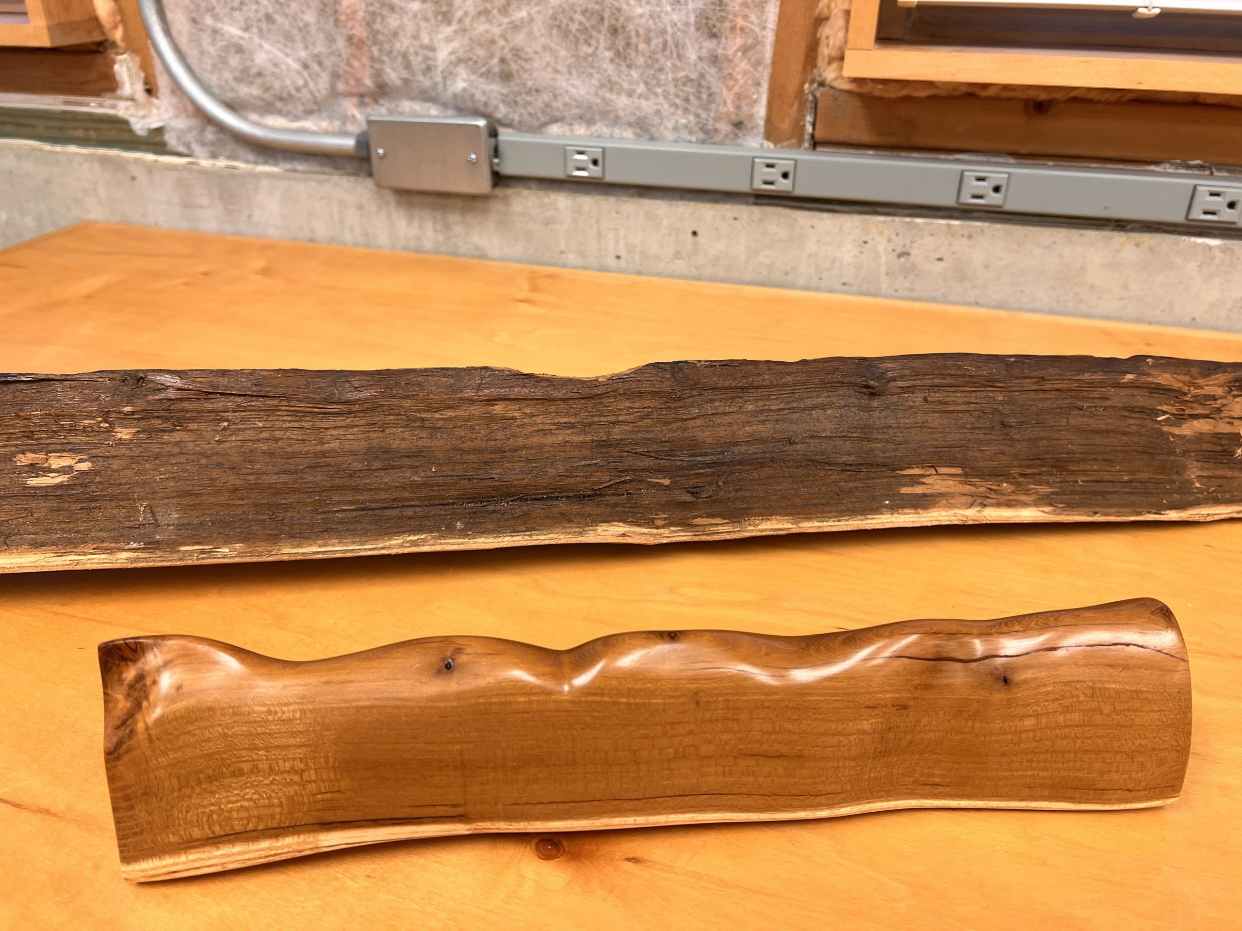 Abstract wood carving from osage orange, taken from the larger piece that was original intended to be an archery bow.